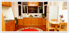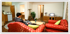 Our Standard Suite is most suitable for the family with 3 to 4 members. It consists of two bedrooms (one with a double-bed and other with a single bed), Apart from that it has a living room, a fully equipped kitchenette, a common bathroom and a balcony.